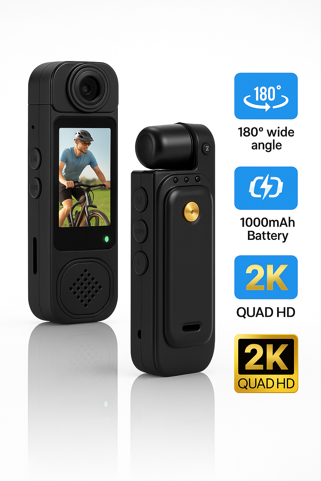 Caméra Sportive Portable 2K - Vision Nocturne & Grand Angle